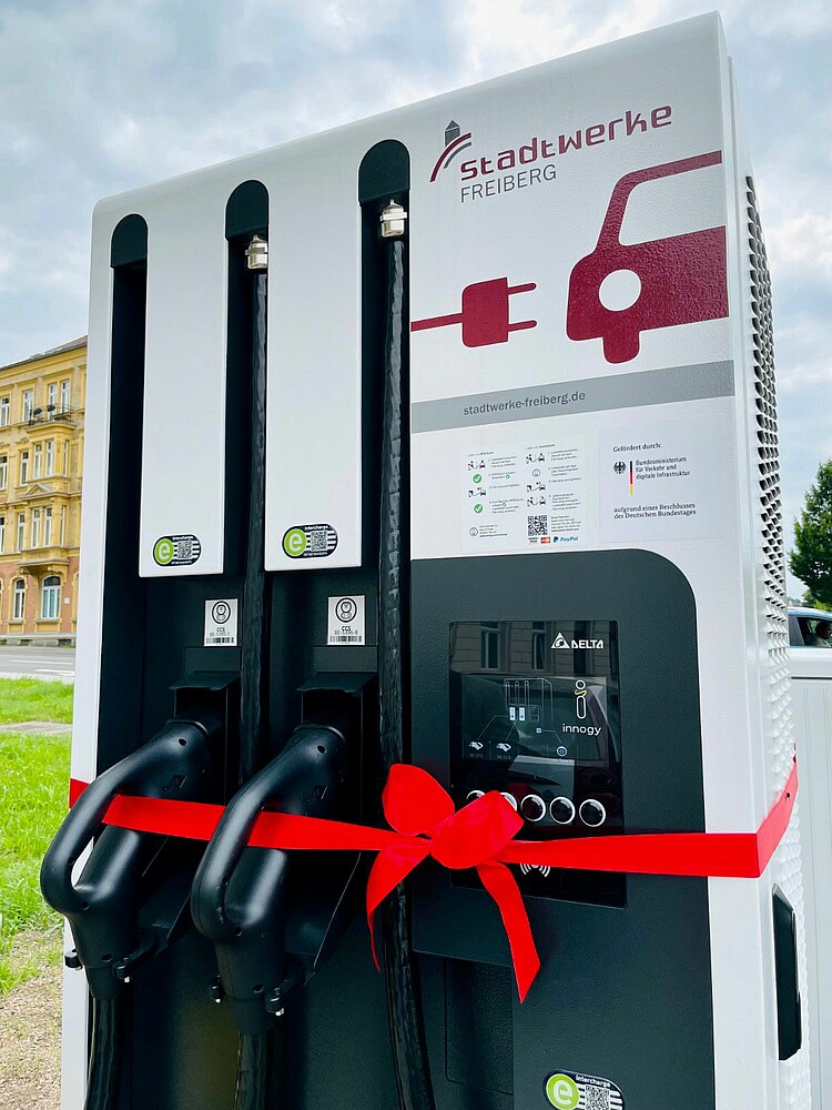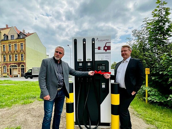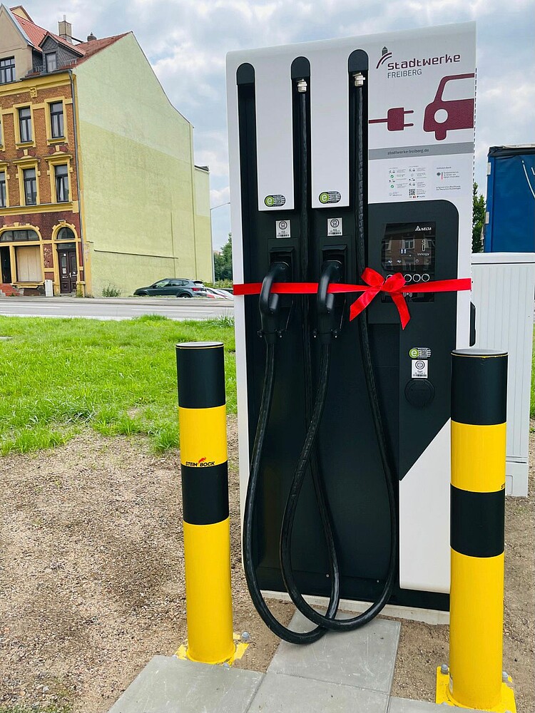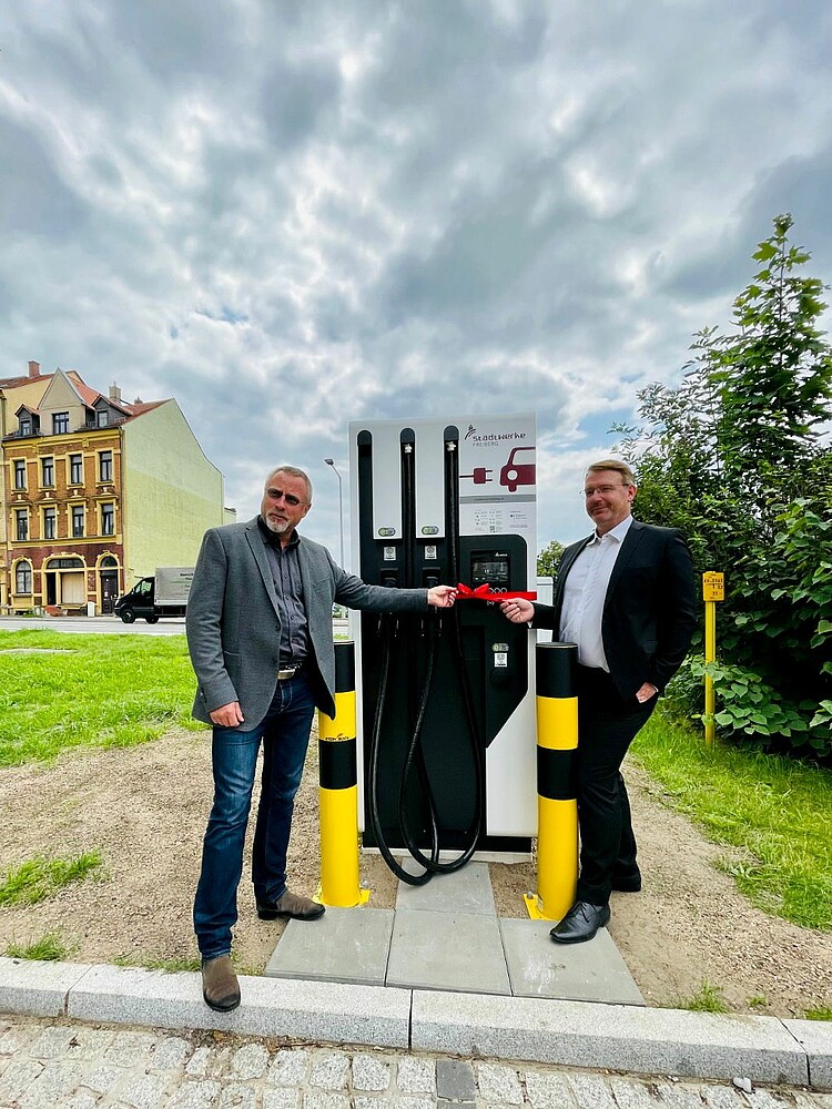 Mit der Zahl der Elektroautos wächst die Zahl der Ladestationen in Deutschland. Auch in Freiberg geht der Ausbau der Ladeinfrastruktur weiter. An der Hornstraße in Freiberg ist heute gemeinsam von Oberbürgermeister Sven Krüger und unserem Vorstandsvorsitzenden Axel Schneegans unsere erste öffentliche Schnellladestation eingeweiht worden.