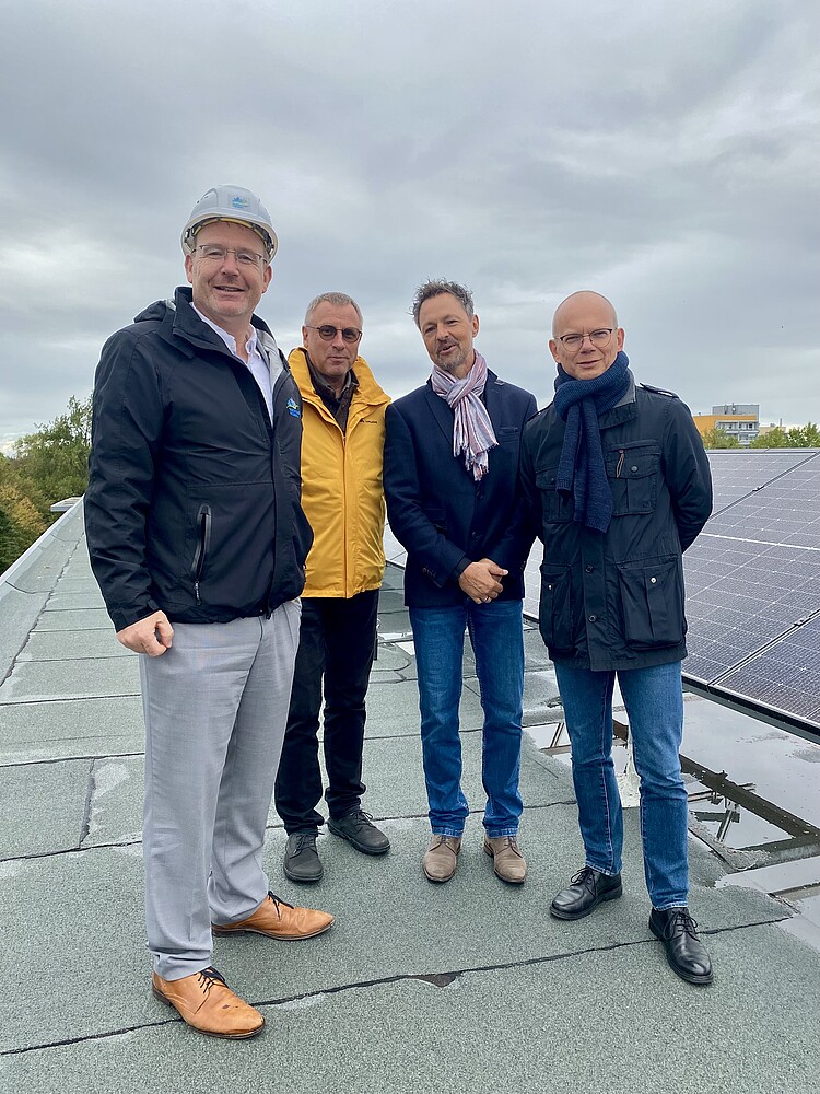 Gemeinsam begutachteten Herr Oberbürgermeister Sven Krüger, die Vorstände der Städtische Wohnungsgesellschaft Freiberg/Sa. Aktiengesellschaft, Jörg Woidniok und Kai Aschermann, sowie unser Vorstandsvorsitzender, Axel Schneegans, die neue PV-Anlage auf dem Dach der Mendelejewstraße 38-48. Die Anlage markiert einen wichtigen Schritt in Richtung einer nachhaltigen Energieversorgung, die direkt vor Ort genutzt wird und Mietern zugutekommt.